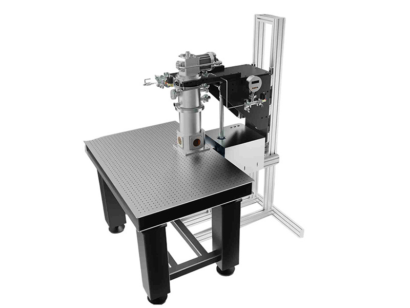 超低震動干式液氦光學低溫恒溫器系統,使用氣體導熱隔震,實現樣品臺納米級的機械穩定性。為有效降低環境震動影響,產品設計安裝在光學隔震平臺上。